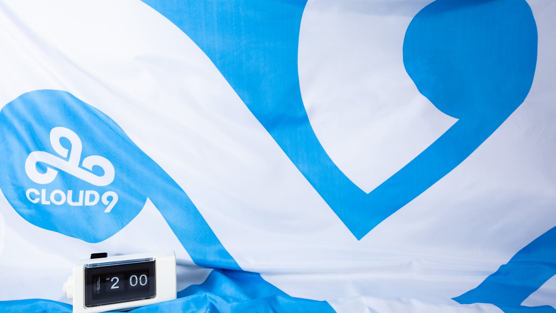 Cloud9ロゴのバナーフラッグです。表と裏でリバーシブルなデザインになっており、ブルーとホワイトのロゴがプリントされています。4つの角にはと目金が付いており、部屋にも飾りやすくなっています。ファンなら見逃せないアイテムの一つです。